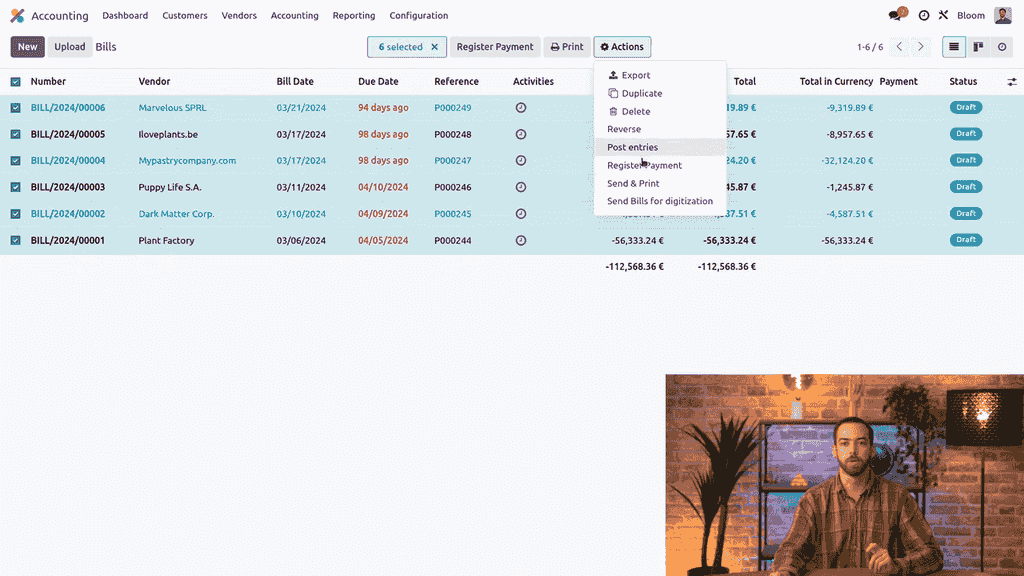 - 移除「Posted」篩選條件以找到你的草稿分錄