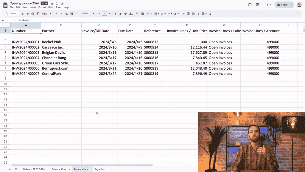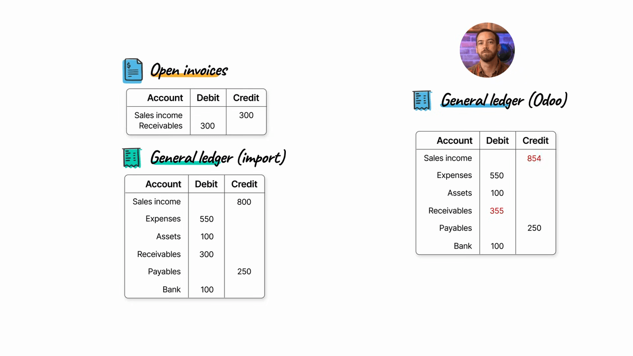 當你在 Odoo 中建立發票或帳單時,系統會自動記入應收或應付帳款。如果你同時從總帳匯入應收餘額,該帳戶中的金額就會重複計算。