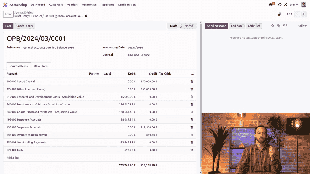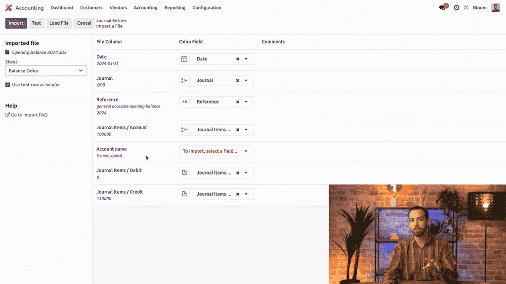 從舊有會計軟體遷移至 Odoo 時,你需要匯入期初分錄,確保各帳戶餘額從正確的起點開始。若跳過此步驟,Odoo 中的財務紀錄將會不完整。