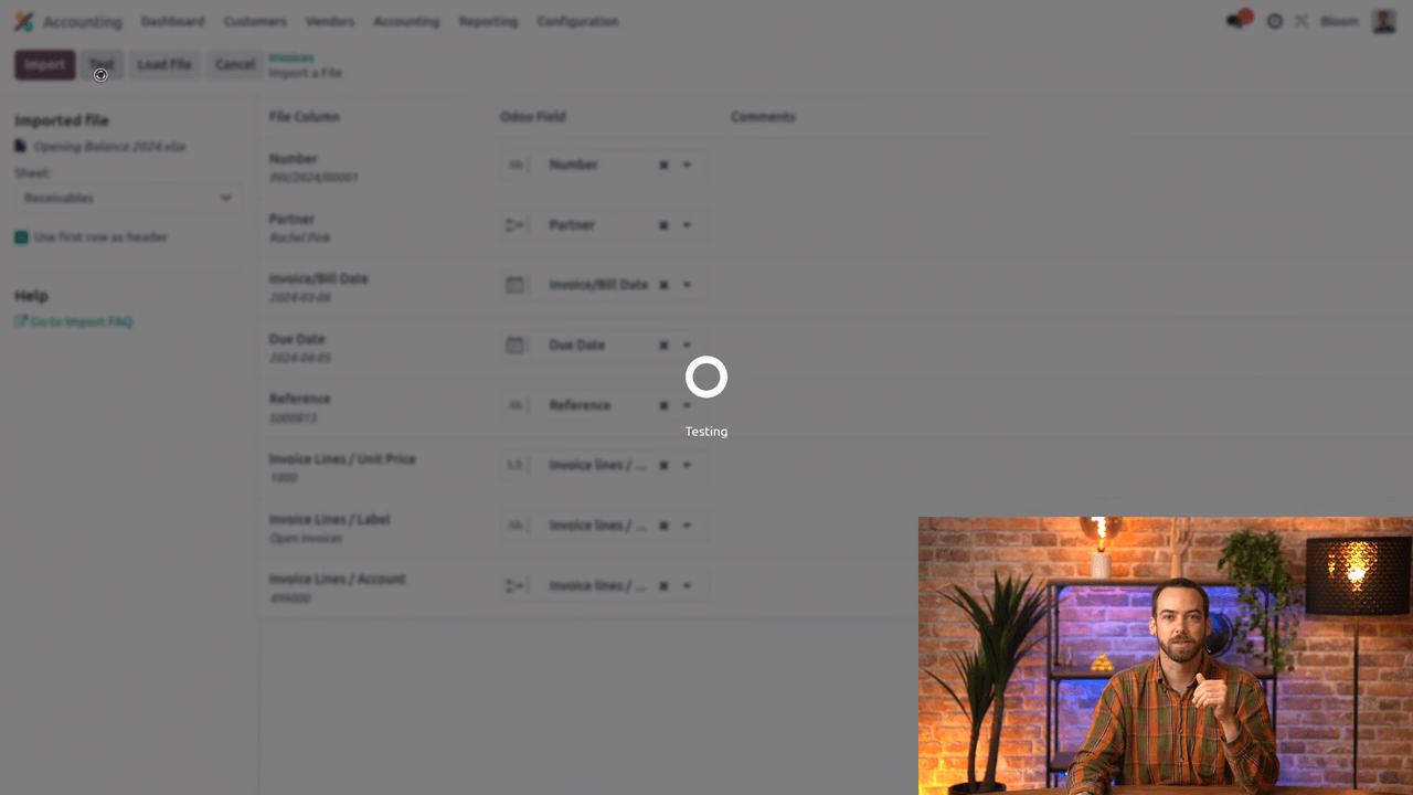 - Odoo 會依據欄位名稱自動對應 — 請確認對應結果是否正確