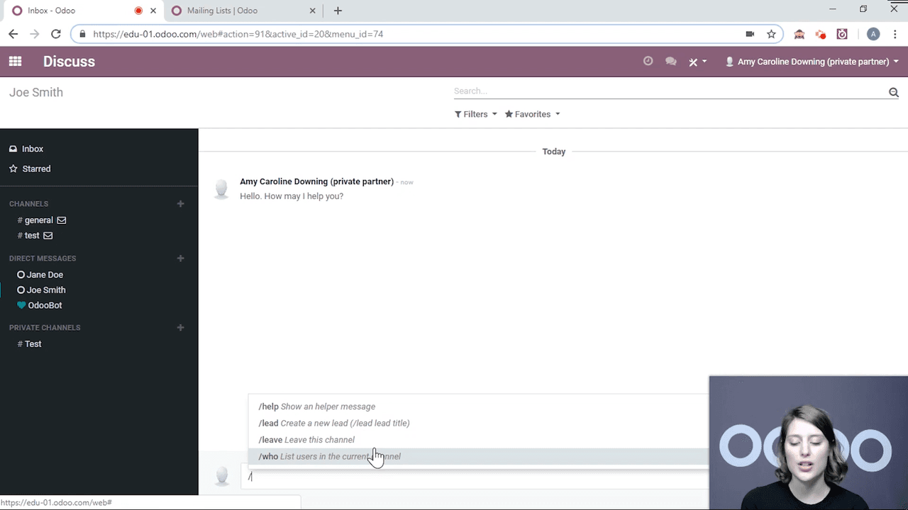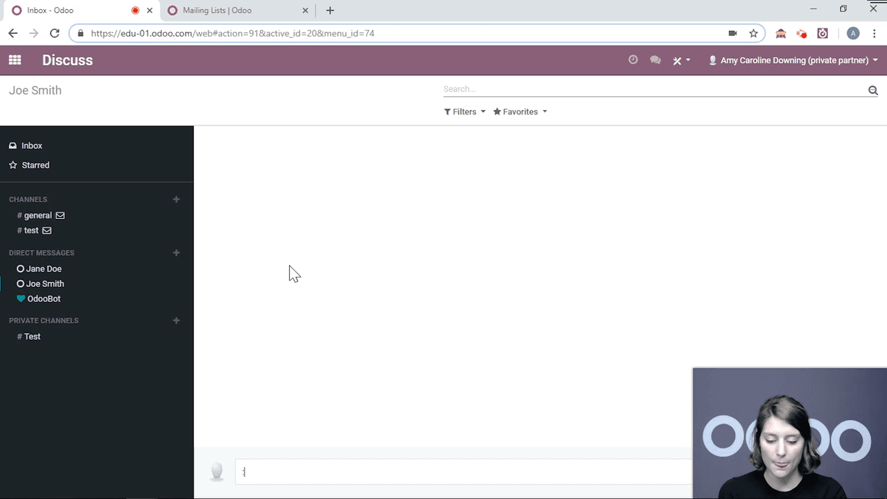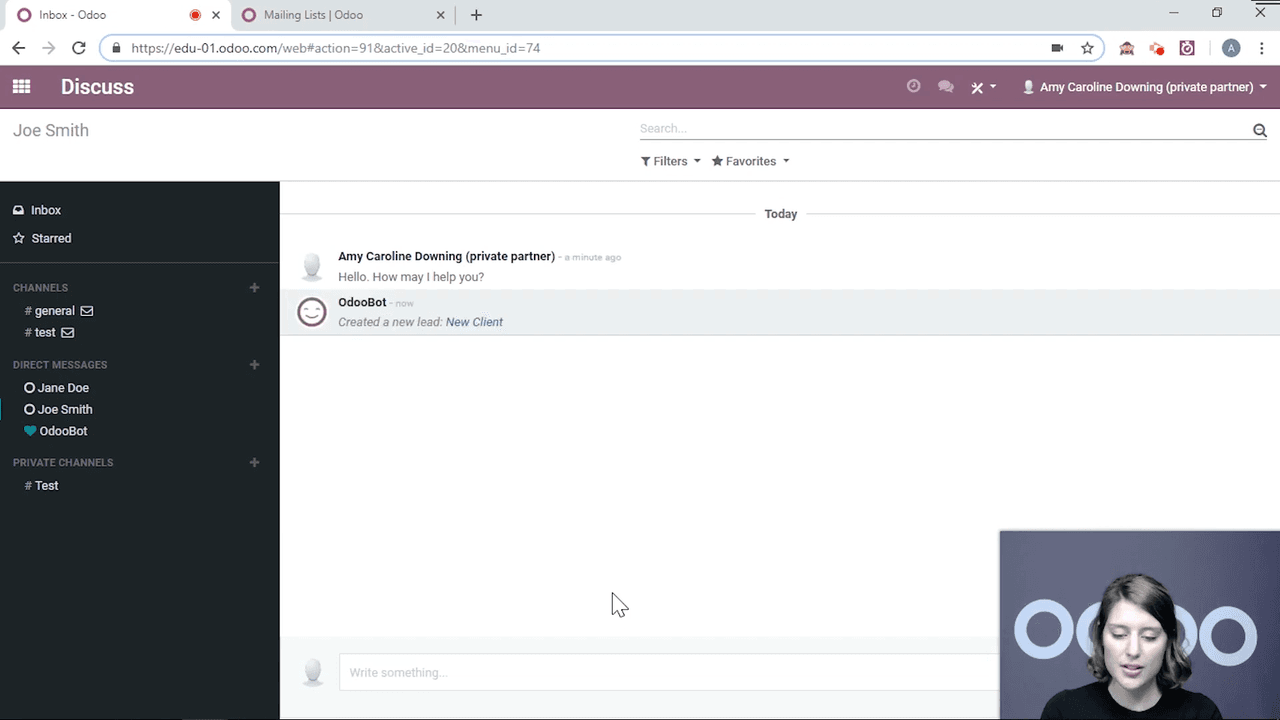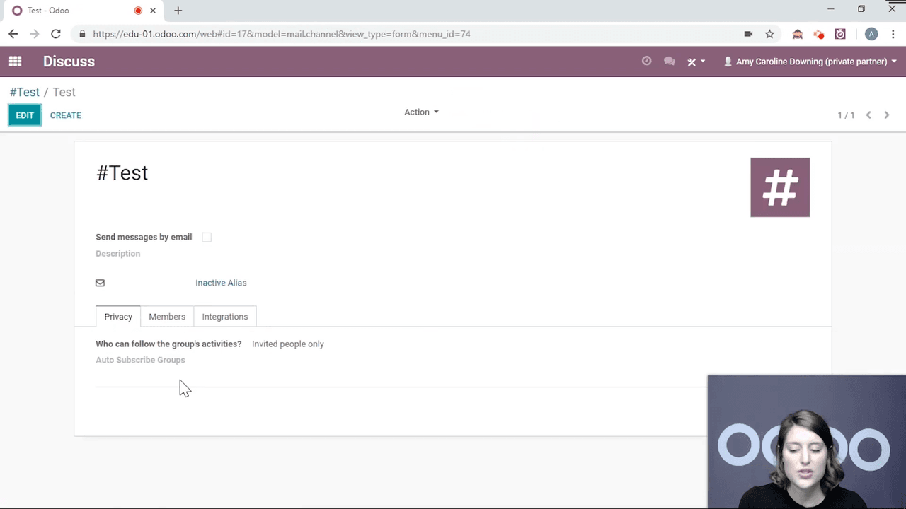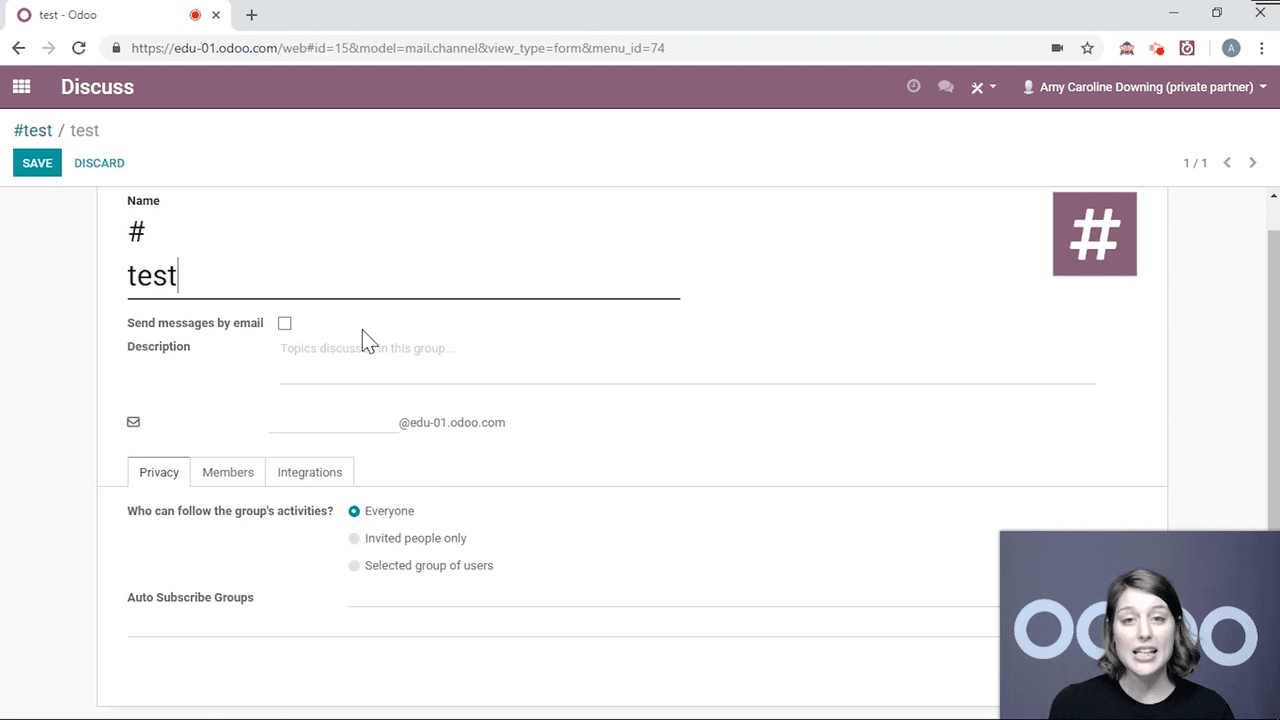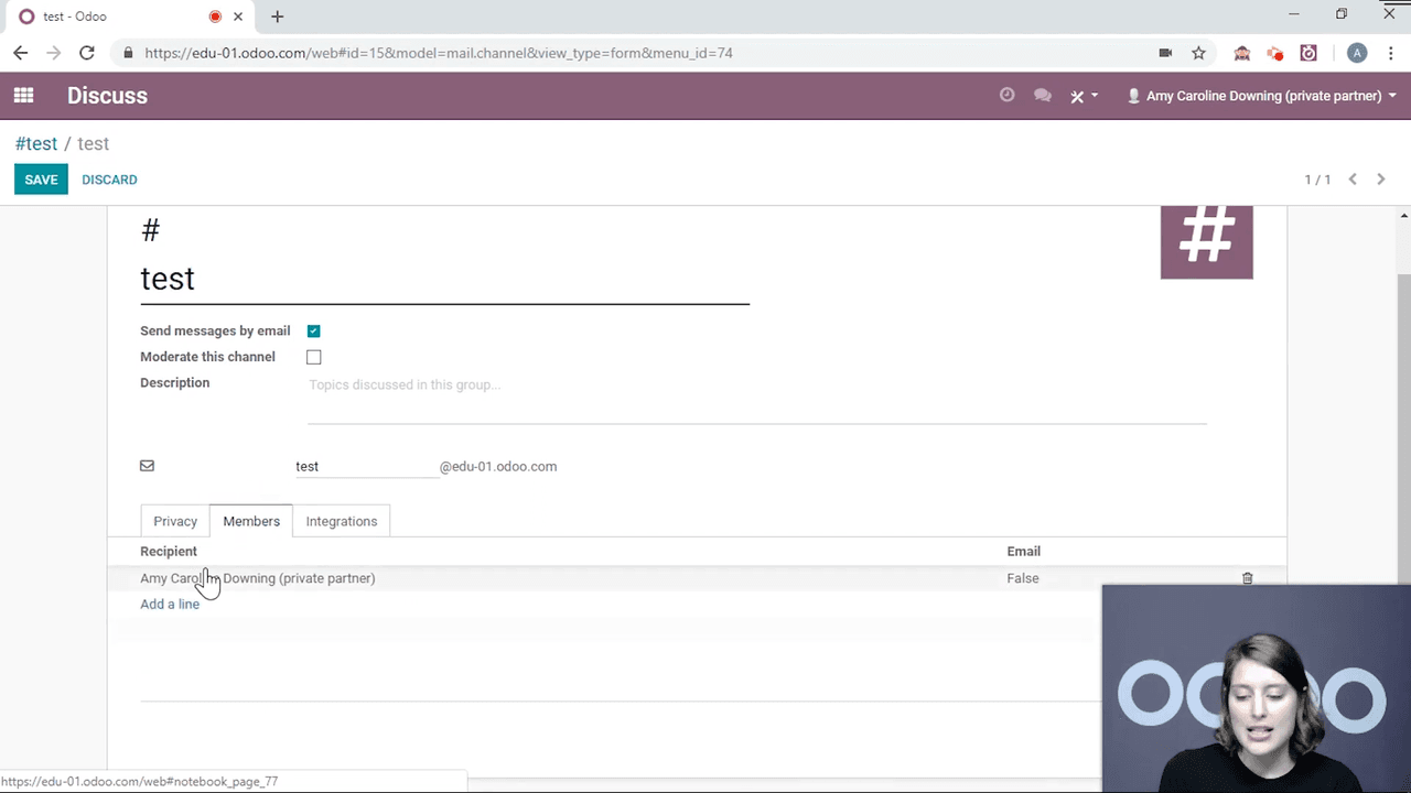 test@yourdomain.odoo.com),讓外部電郵直接進入頻道