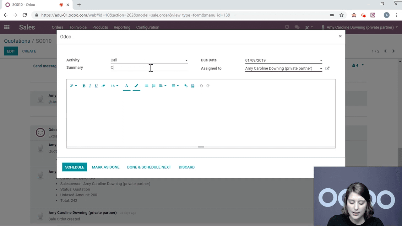 Odoo Discuss 將溝通直接嵌入你的 ERP 系統,解決了這個問題。每一段對話、筆記和跟進都與相關記錄並存——銷售訂單、潛在客戶、發票等等。
