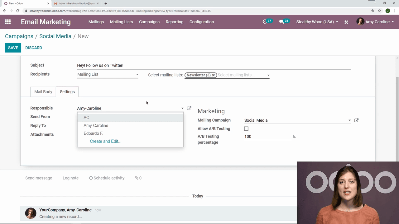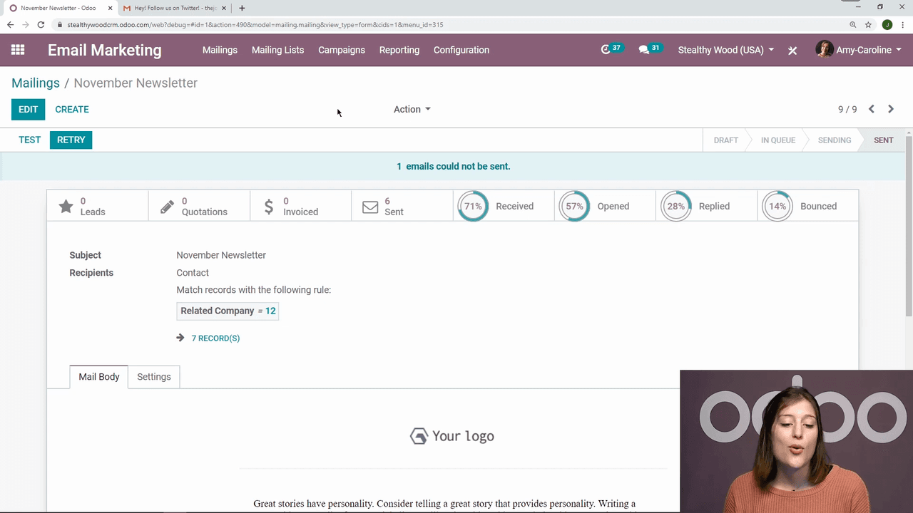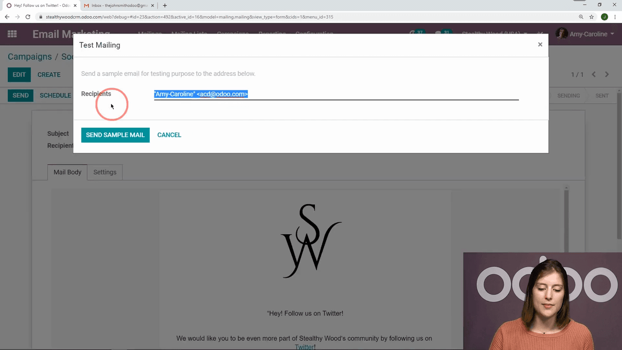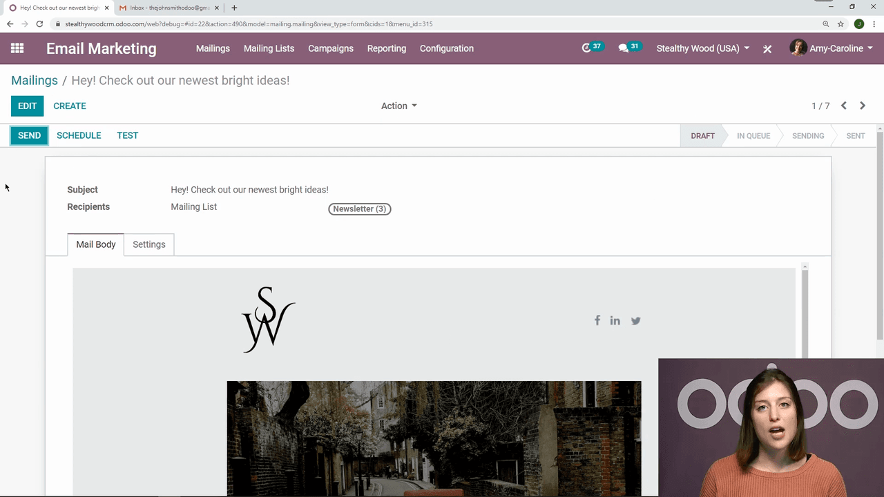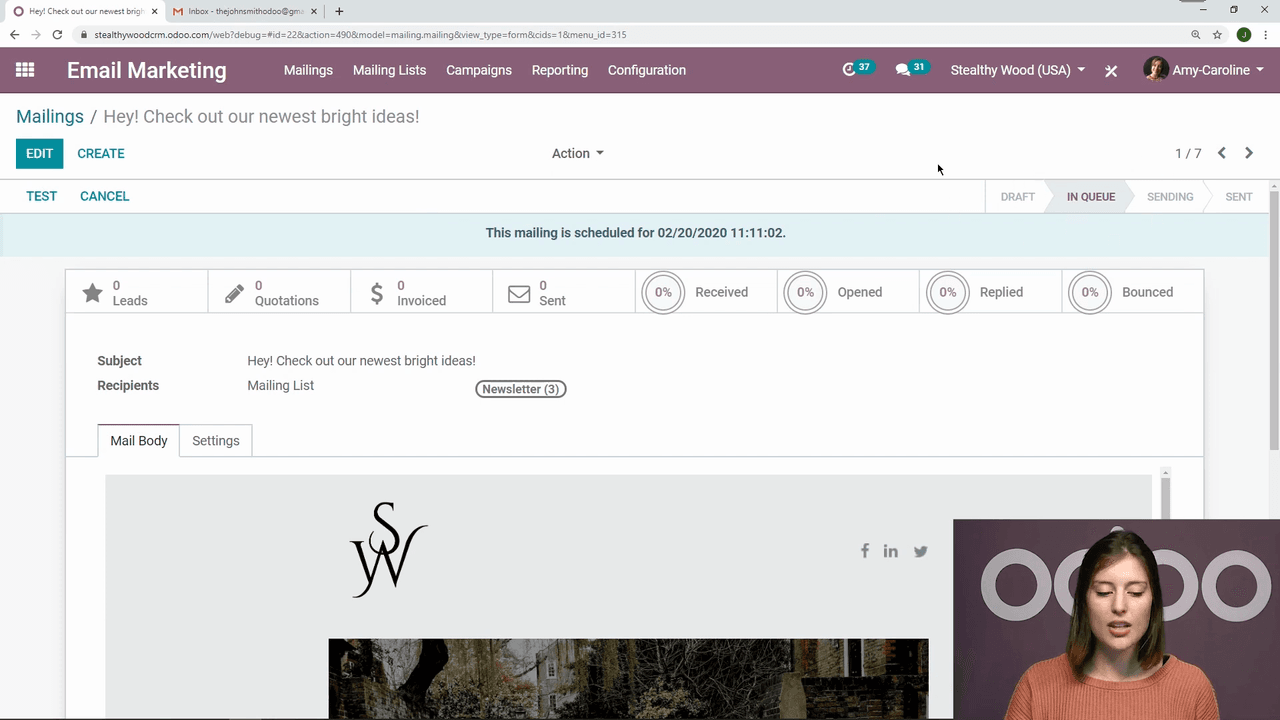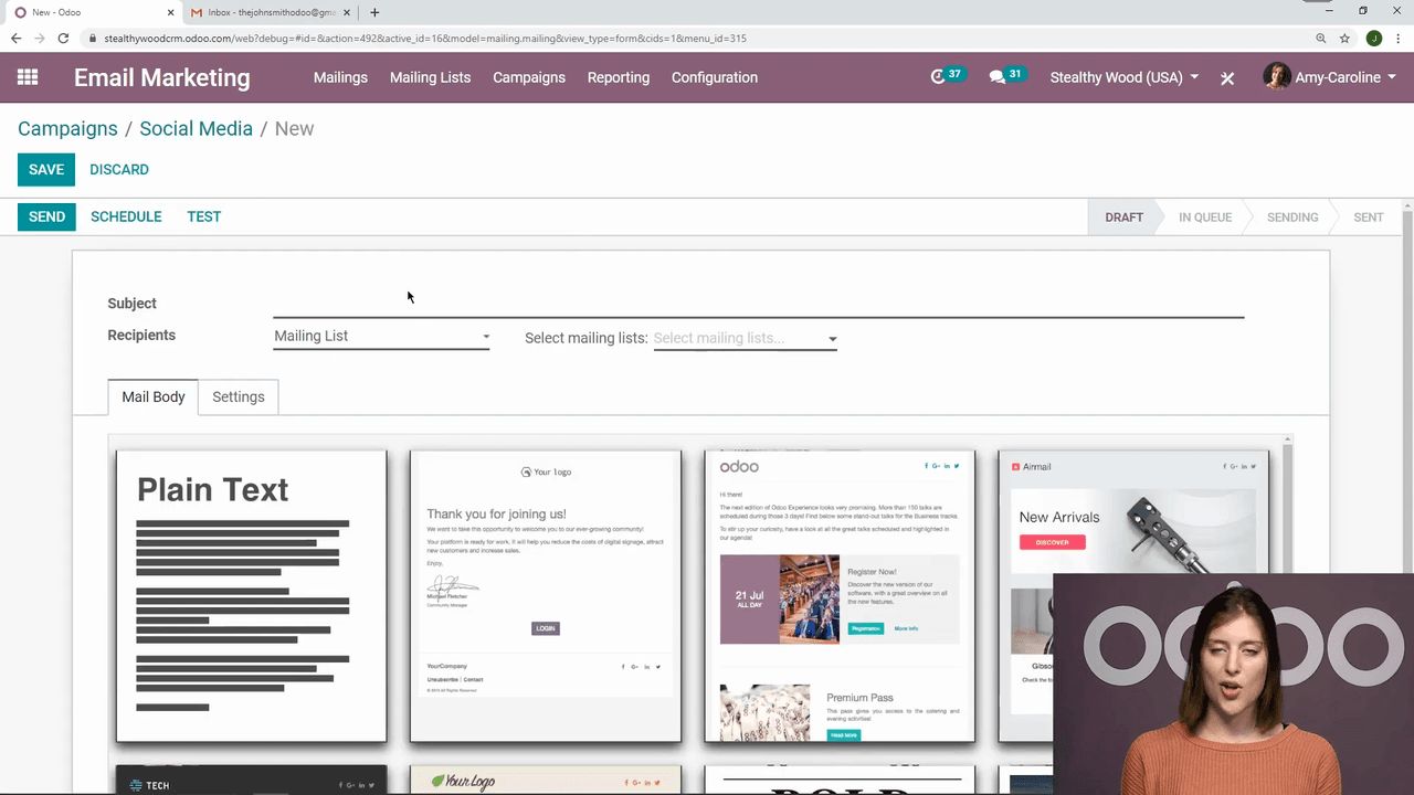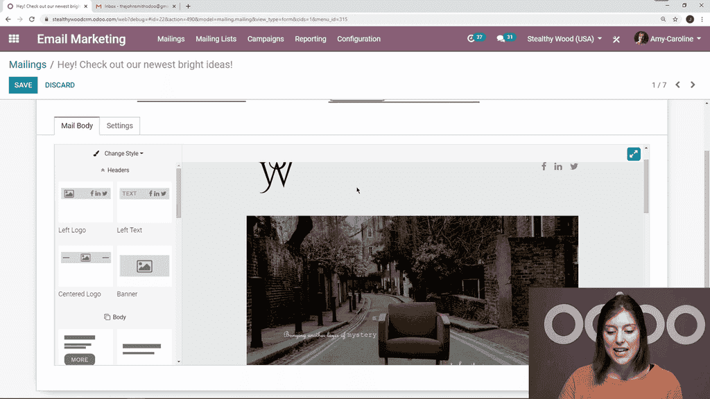 - 使用 Odoo 內建範本設計你的第一封電郵