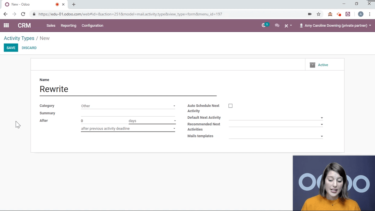 自訂活動類型適用於所有模組,因此在 CRM 中建立的類型也會出現在專案、銷售及其他應用程式中。