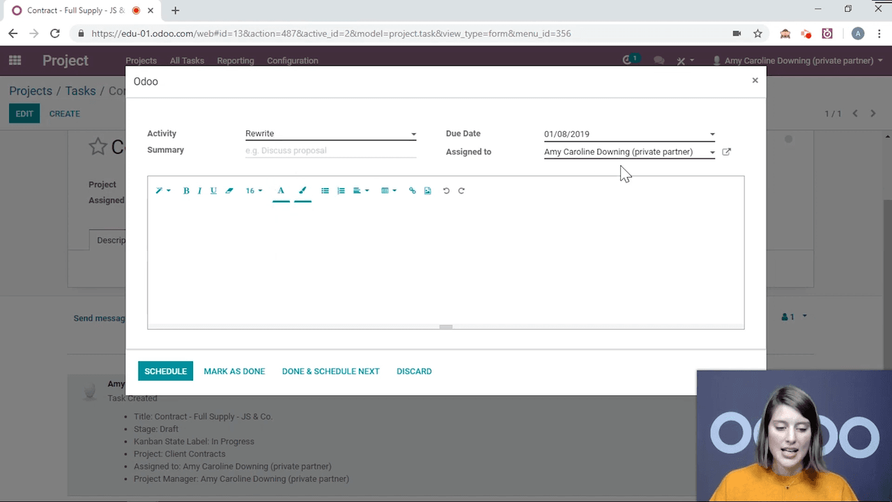 這種跨模組的一致性意味著你的團隊只需使用一套系統來追蹤所有任務,無論使用的是哪個 Odoo 應用程式。