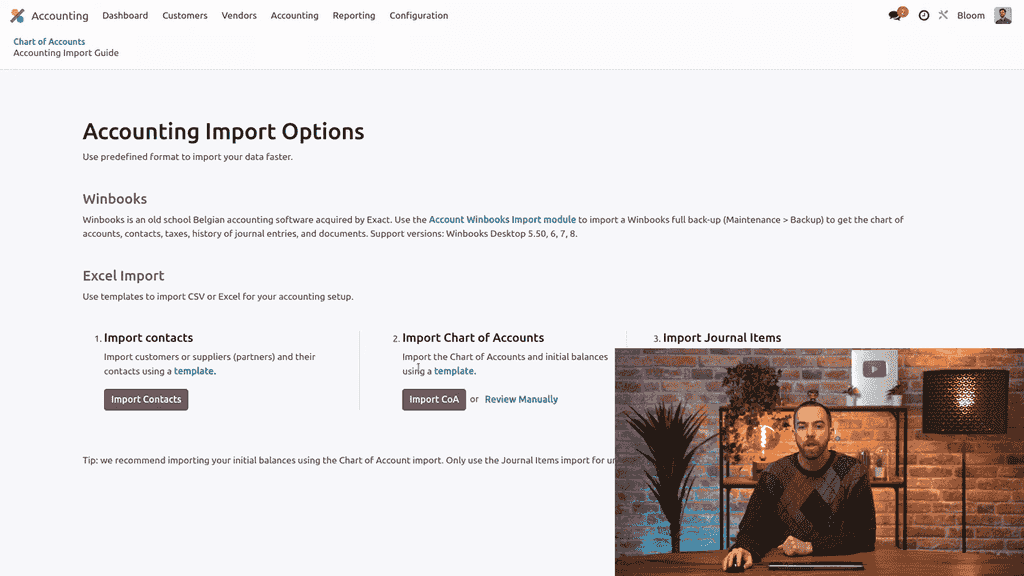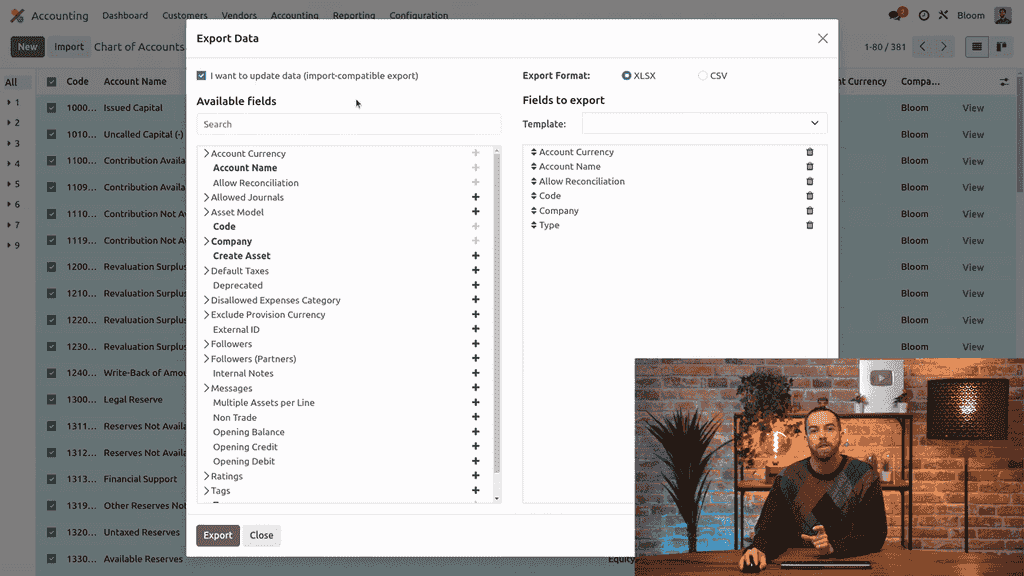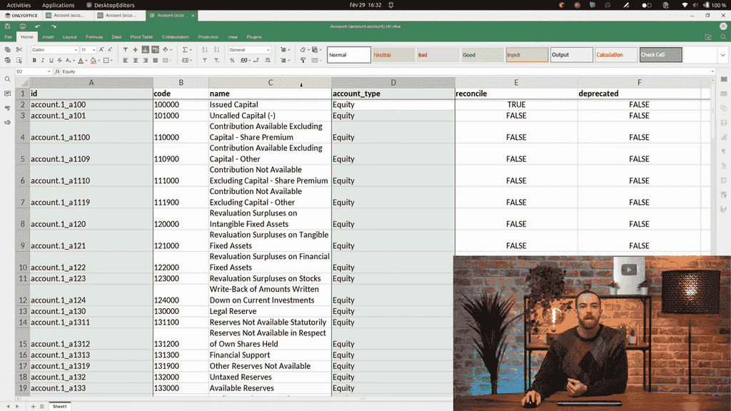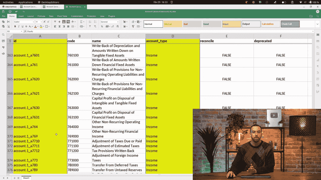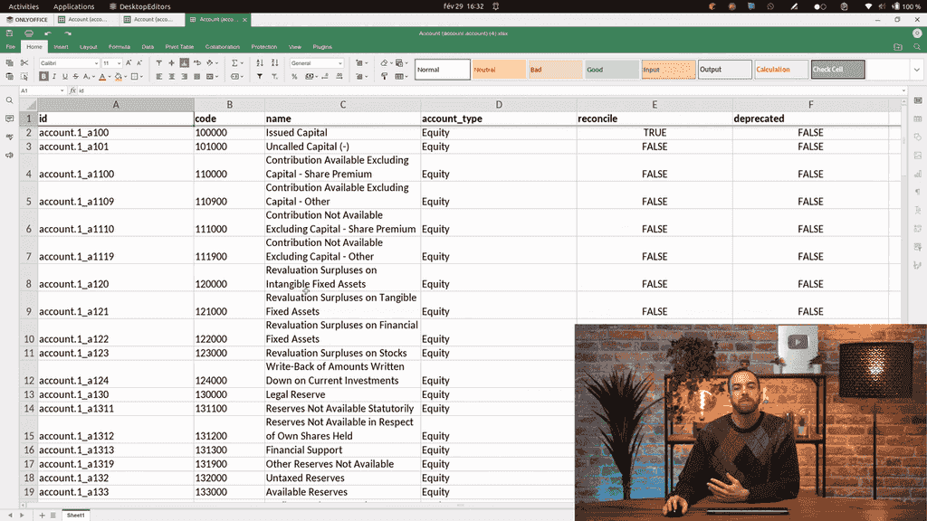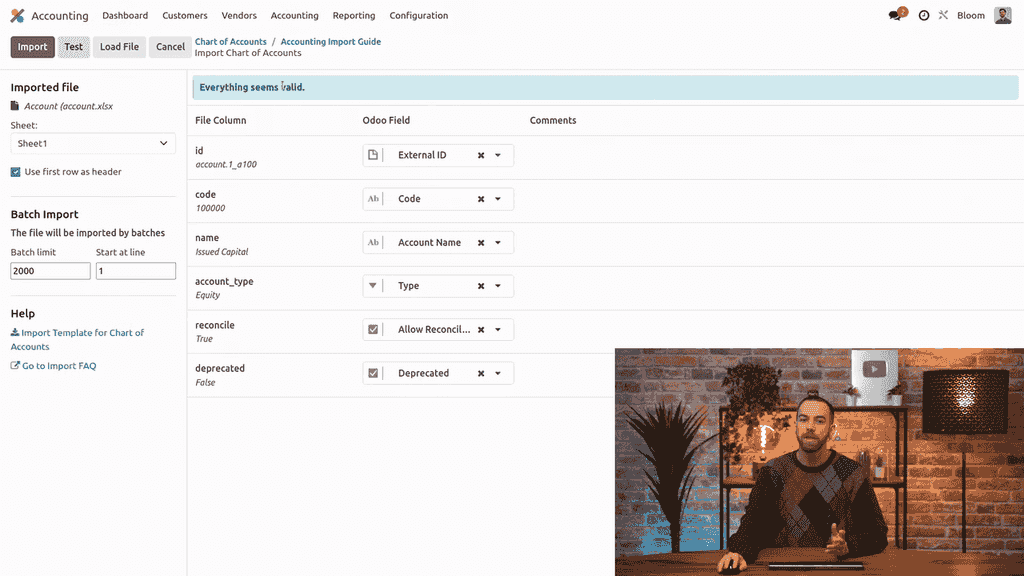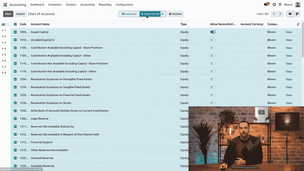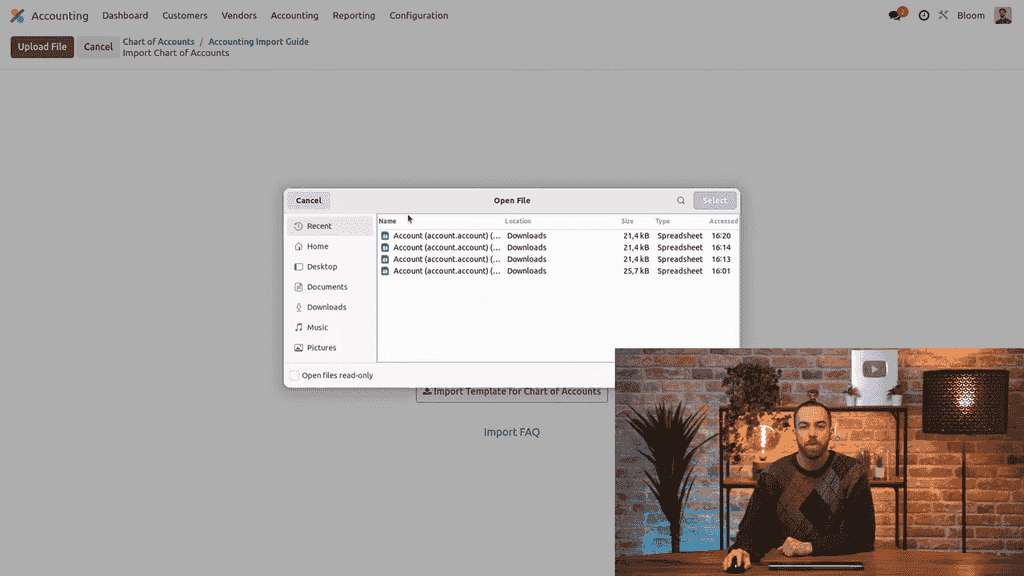 在 Odoo 中逐一編輯科目適用於小規模修改,但擁有大量會計科目的公司需要更快速的方法。試算表匯入功能讓你在熟悉的試算表環境中進行批量編輯和新增,然後一次性將所有變更推送回 Odoo。