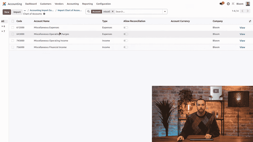 - 在 Odoo 中,前往 Chart of Accounts 清單視圖